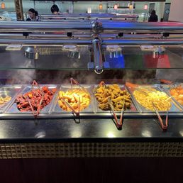 One of favorite buffet when you're in the area, they offer hot and warm meal from different cuisine, Western, Chinese and Japanese. This buffet also has Hibachi style to prepare the meal as we're requested. During dinner time, they offer more seafood and crabs on the hot meal section. The restaurant itself is very spacious especially the main entrance area with a pond and water fountain. The seating area are in cubes, it's not very spacious but it's ok, but if you come in groups, you'll be seated in the mid section of the dining area between cubes, and that's when you feel a lil cramped. They have a special area if you're having a small gathering in groups though, but you might need reservations for that. The restroom is clean and spacious, with all the potty cubes working, and maybe need more often to be clean during busy hours. *Don't forget to get their ice creams for desserts, they have good selections of Hershey's ice creams!